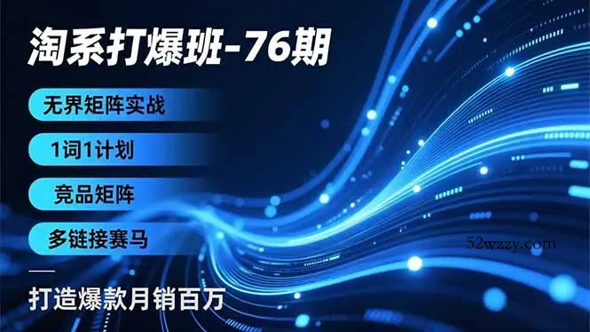 本课程为《淘宝天猫打爆班原创技术第76期:万相台无界矩阵》,聚焦淘宝/天猫平台最新付费推广工具“万相台无界”的矩阵化实战策略。课程系统拆解了关键词矩阵(1词1计划、智能点击群、多成交布局)、人群矩阵(111计划模式、竞品竞店矩阵、精准打标)以及全站推广矩阵(多链接赛马、全店托管)的精细化搭建与组合操作技巧。通过多计划、多目标的矩阵式布局,旨在帮助学员实现高精准度、高投产的流量获取与爆款打造,提升店铺整体运营效率与盈利能力。