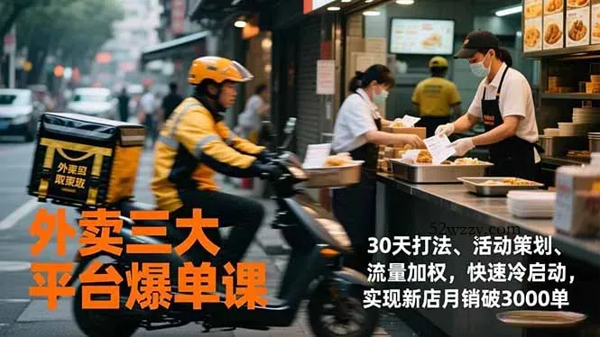 这是一套涵盖美团、饿了么、京东外卖三大主流平台的外卖店铺系统运营课程。课程从外卖运营的底层逻辑讲起,系统性地教授店铺形象优化(名称、头像、菜单结构)、爆款产品打造、平台活动策划(拉新、提客单、复购)、付费推广策略(点金/斗金推广、流量卡等)以及新店30天爆单打法和老店盘活五步法等实战技巧。课程针对各平台(美团/饿了么/京东外卖)的规则和工具进行专项拆解,旨在帮助餐饮商家全面掌握多平台外卖运营能力,有效提升店铺曝光、转化与单量,实现营业额增长。