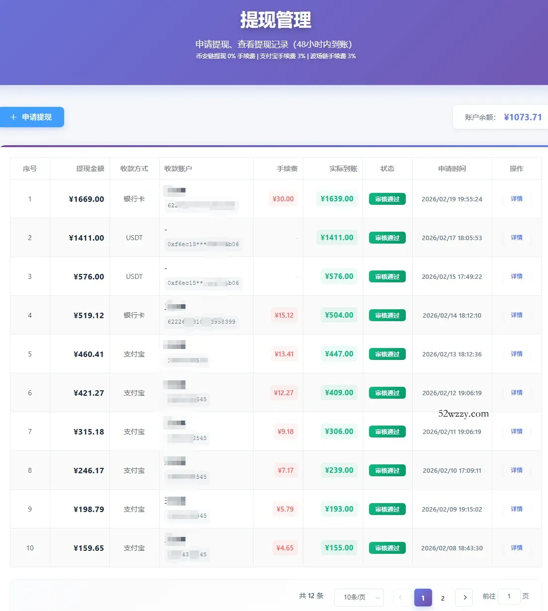 提现灵活:满10元即可提现,支付宝、银行卡,币安,实时到账。